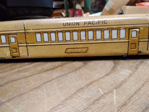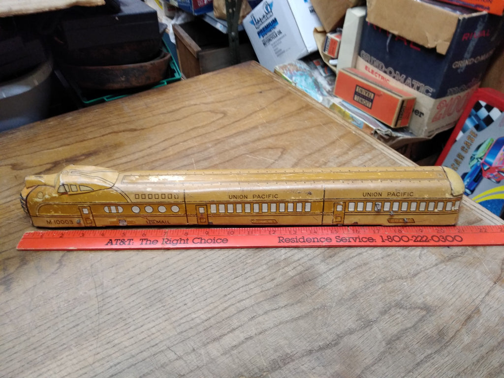 ***PLEASE LOOK AT ALL THE PICTURES AND ASK QUESTIONS BEFORE BUYING*** This is a Vintage Marx Union Pacific M10003 Streamlined Metal Wind Up US Mail Train with Dining Car and Coach, Approximately 21 inches! The pictures are a substantial part of the description so please examine all the photos and contact me if you have any questions. We will be happy to save you shipping costs by picking this up at our shop. Thank You 090524- RK-02