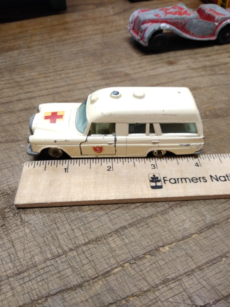 ***PLEASE LOOK AT ALL THE PICTURES AND ASK QUESTIONS BEFORE BUYING*** This is a Vintage Matchbox King Size #K6 Mercedes Benz Binz Ambulance Diecast Toy Car made in England.