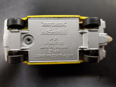 Vtg Matchbox Superfast No. 21 Renault 5TL-Made in England Lesney 1978 "Le Car". Trunk swings open upwards.