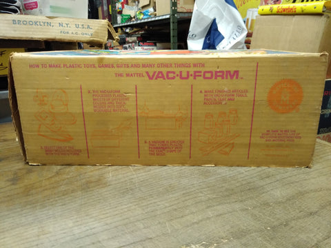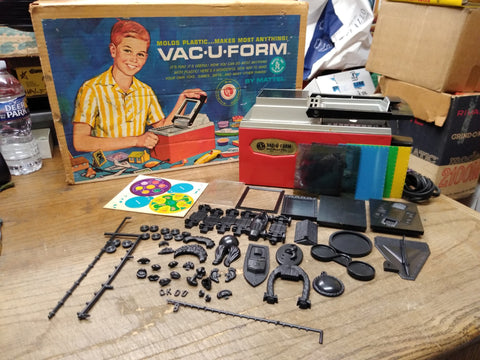 This is a Vintage Mattel Vac-U-Form Plastic Molding Set Toy 1962 Working with Molds and Box***Cars Work but Transformer does not*** The pictures are a substantial part of the description so please examine all the photos and contact me if you have any questions. We will be happy to save you shipping costs by picking this up at our shop. Thank You 010625- RK-03