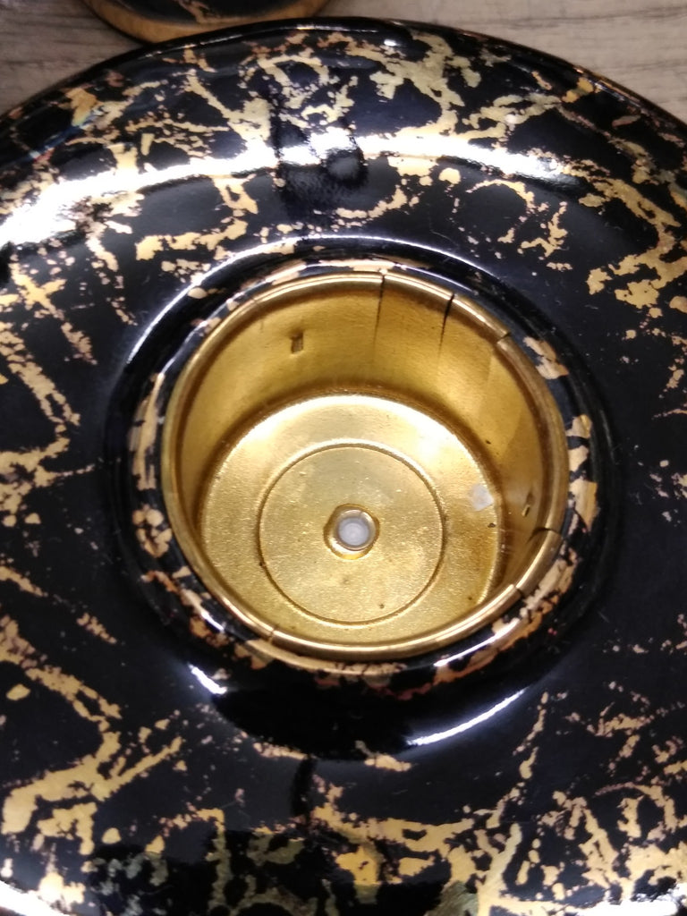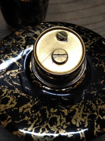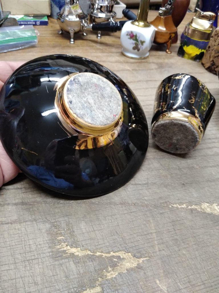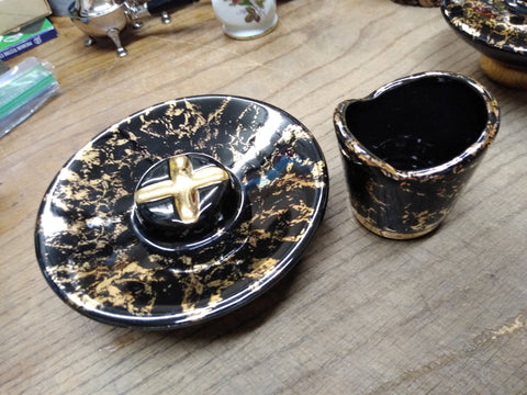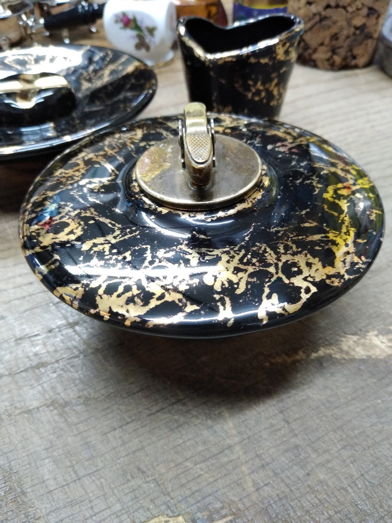 ***PLEASE LOOK AT ALL THE PICTURES AND ASK QUESTIONS BEFORE BUYING*** This is a Vintage MCM NASH Table Top Cigarette Lighter Holder Ashtray Set Black and Gold Leaf, Beautiful Item! *** The pictures are a substantial part of the description so please examine all the photos and contact me if you have any questions. We will be happy to save you shipping costs by picking this up at our shop. Thank You 072925- RK-03