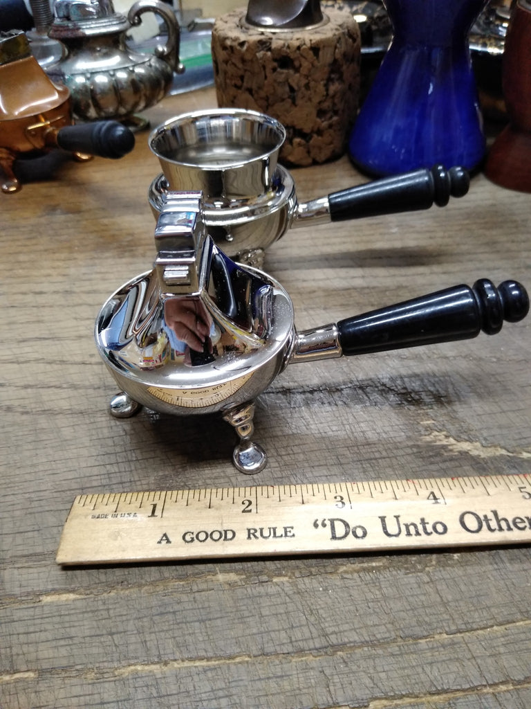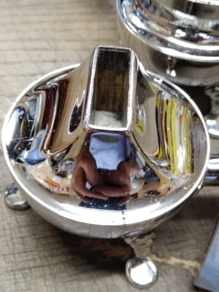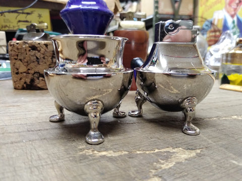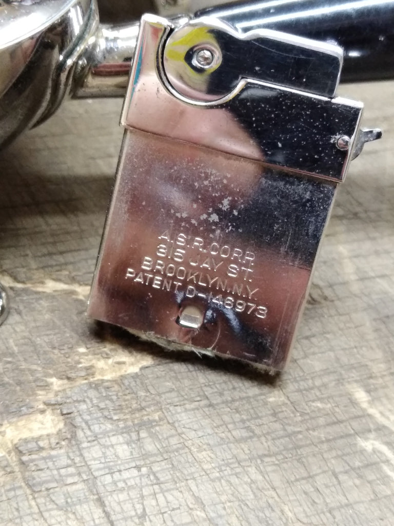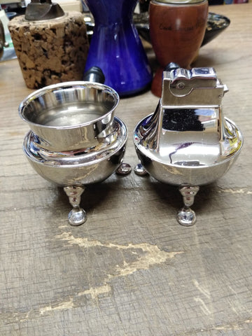 ***PLEASE LOOK AT ALL THE PICTURES AND ASK QUESTIONS BEFORE BUYING*** This is a Vintage MCM Table Top Cigarette Holder Lighter Set ASR 3 Footed Rhodium Plate USA!!!! *** The pictures are a substantial part of the description so please examine all the photos and contact me if you have any questions. We will be happy to save you shipping costs by picking this up at our shop. Thank You 072525- RK-11