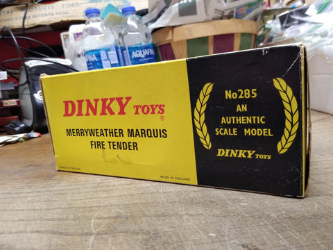 This is a Vintage Meccano Dinky Toys Diecast 285 Merryweather Marquis Fire Tender Truck with Water Pump, Instructions, and Original Box and in Very Good Condition! *** The pictures are a substantial part of the description so please examine all the photos and contact me if you have any questions. We will be happy to save you shipping costs by picking this up at our shop. Thank You 120624- RK-03