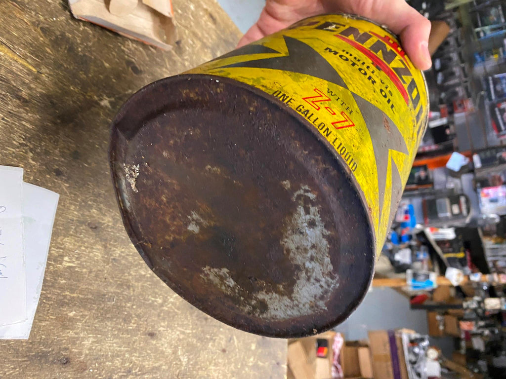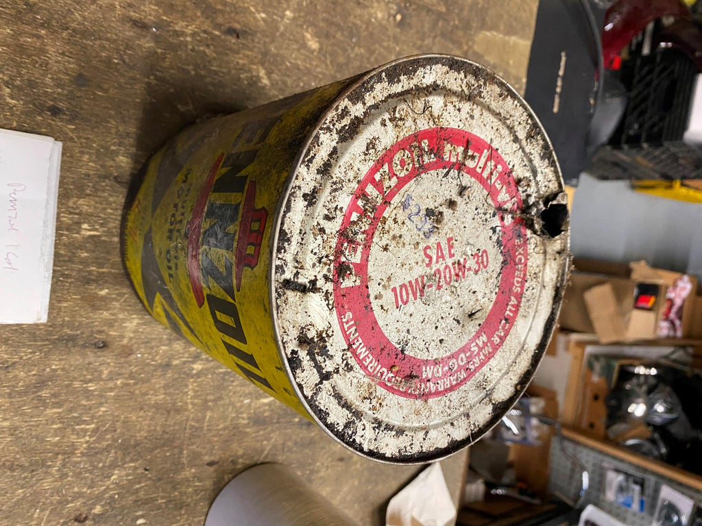 Vtg Metal 1 Gallon Pennzoil Oil Gas Can Tin collectible Service Station Garage, loved the patina, didnt want to clean it!