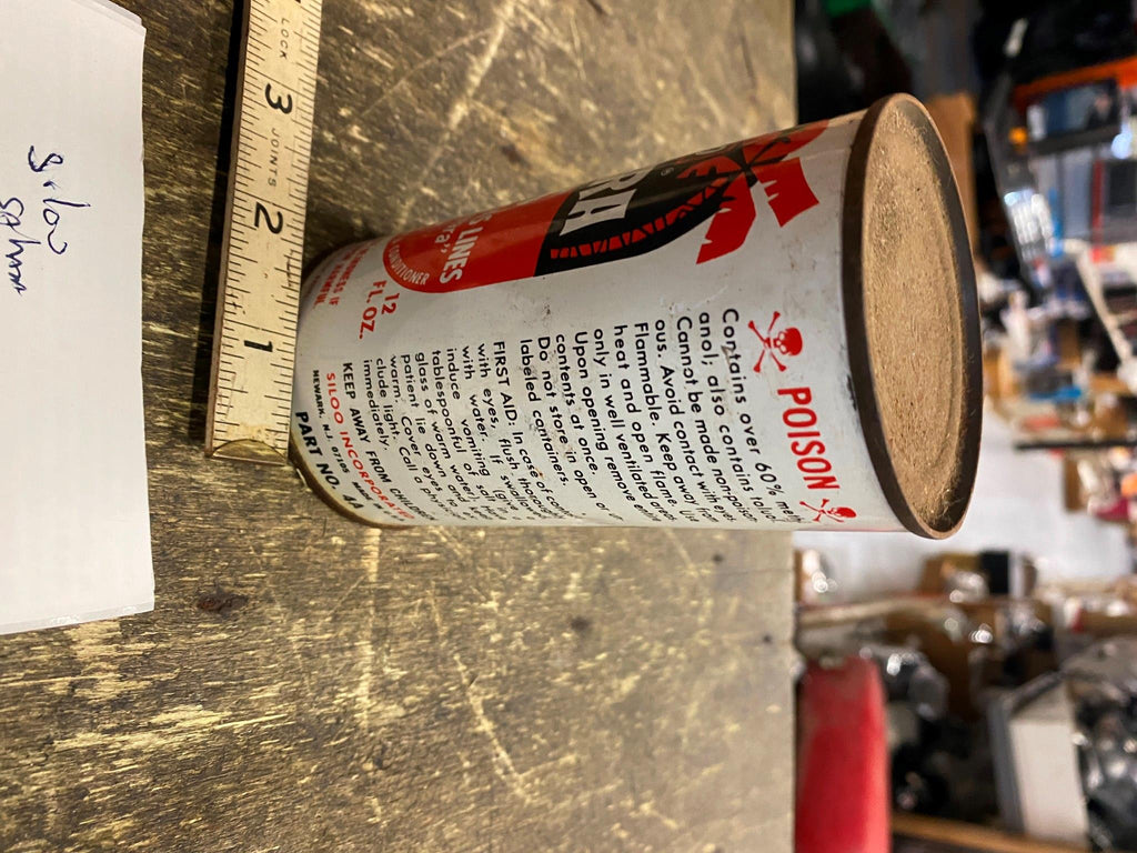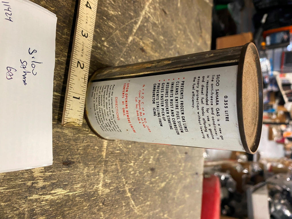 Vtg Metal Oil Gas Can Siloo Sahara Tin Service station Great Graphix Garage CAve