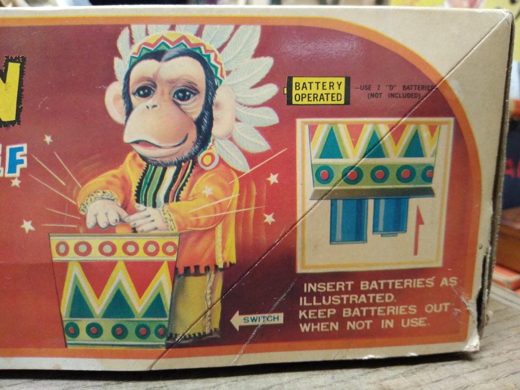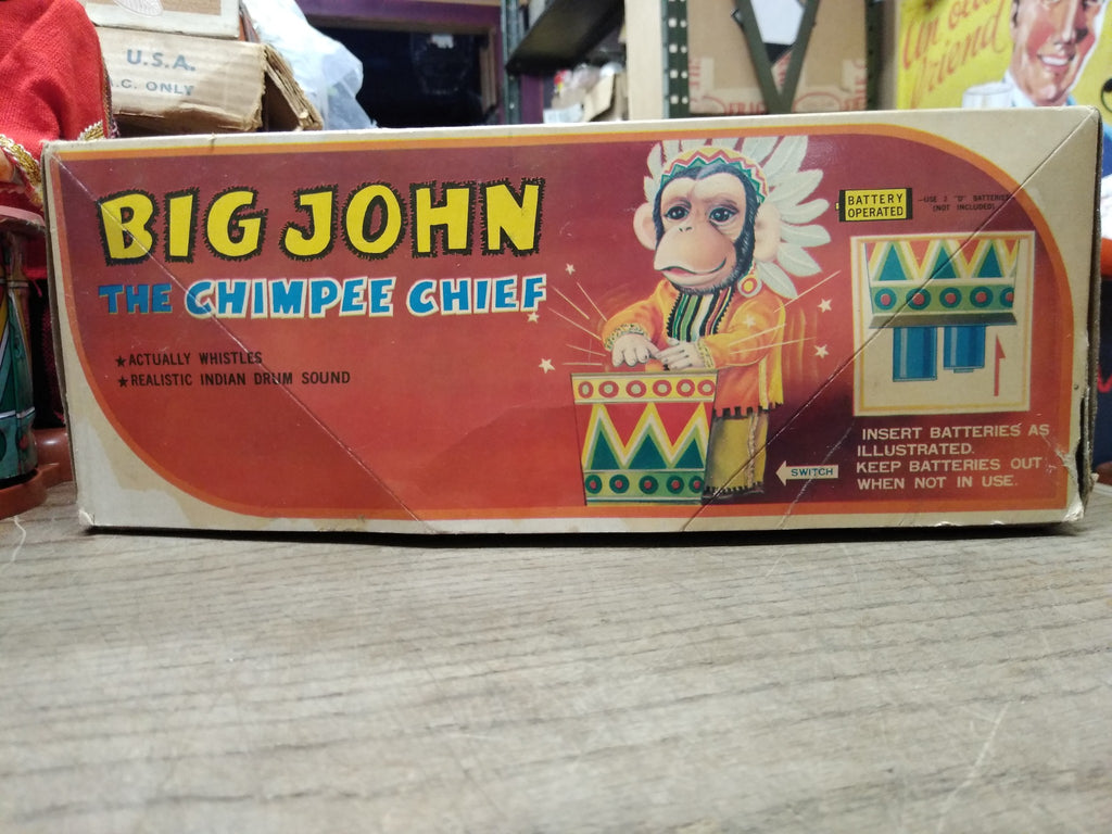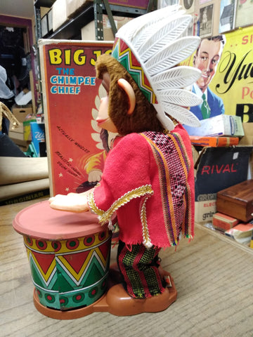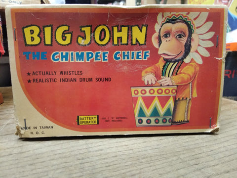 Vtg Metro Big John The Chimpee Chief Drumming Whistling Toy Repair Lot w/Box!