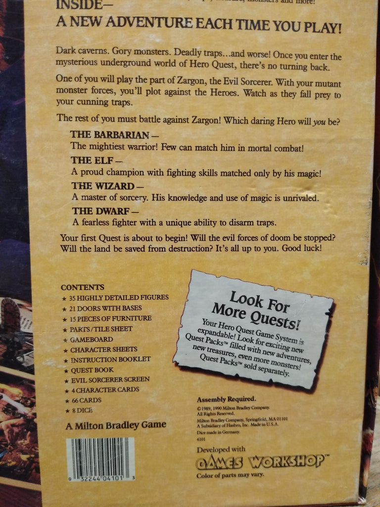 Vtg Milton Bradley HERO QUEST Game System w/Cards Dice Figures Instructions Box!