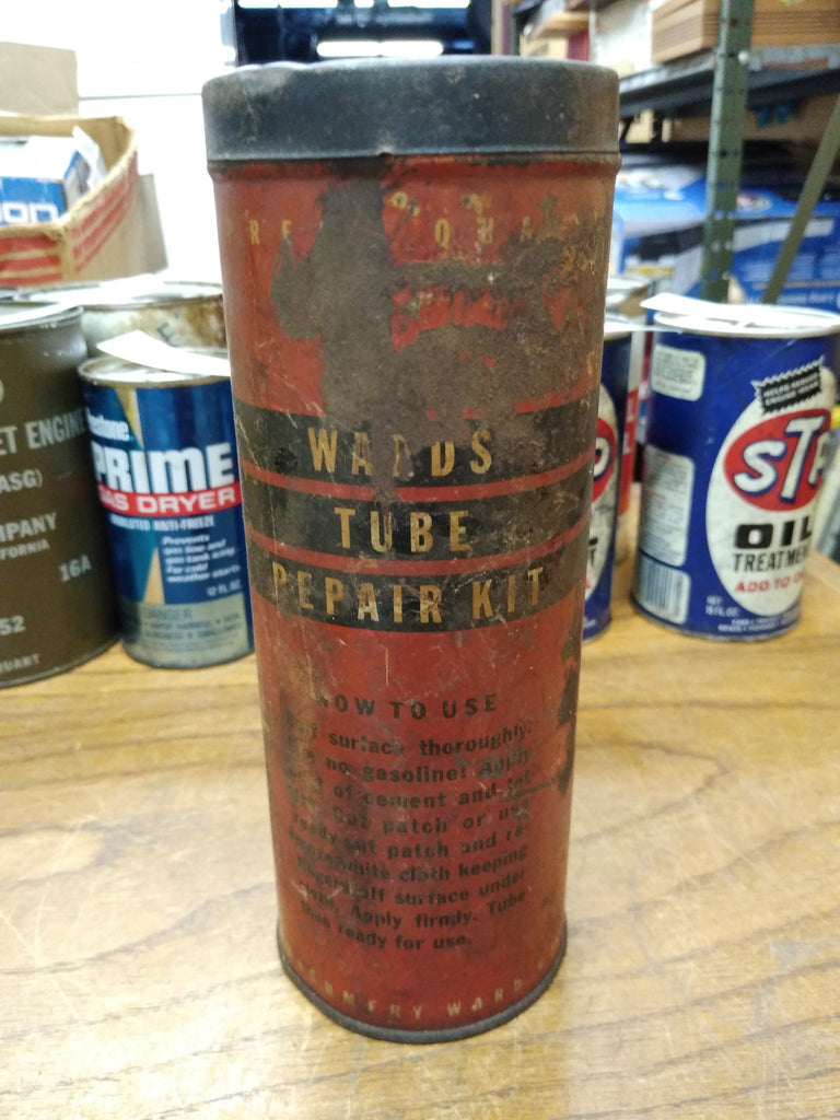 This Vintage Montgomery Wards Tube Repair Kit is in Good Shape! It does have shelf wear and needs cleaned. If cans are full we can empty it if you would like to save some money on shipping, just let us know. Be sure to read all condition descriptions. The pictures are a substantial part of the description so please examine all the photos and contact me if you have any questions. We will be happy to save you shipping costs by picking this up at our shop. Thanks for looking.