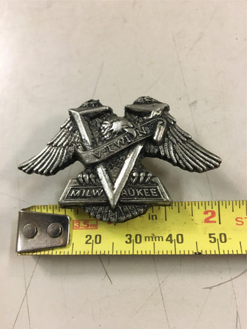 VTG motorcycle collectible old biker vest pin "Bald Eagle Milwaukee V-Twin" pin.
