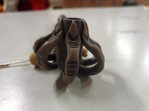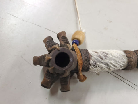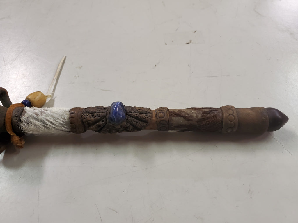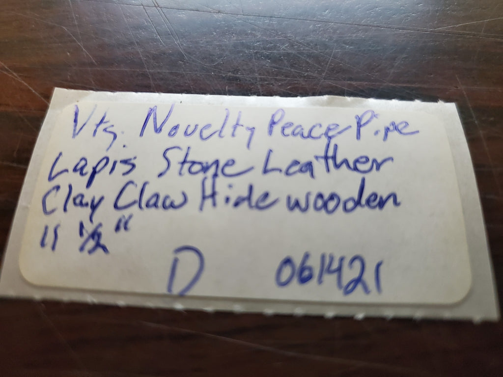 Vtg Novelty Peace Pipe Lapis Stone Leather Clay Claw Hide wooden 11 1/2". This item is in nice condition. Please look at all pictures. Selling as pictured.