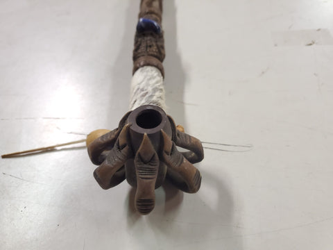 Vtg Novelty Peace Pipe Lapis Stone Leather Clay Claw Hide wooden 11 1/2"