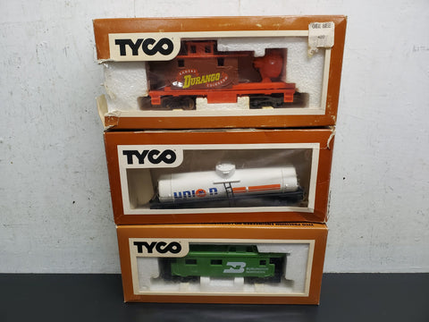 Vtg Tyco HO Scale Train Cars Lot Of 3 Union Durango Burlington Northern in Boxes