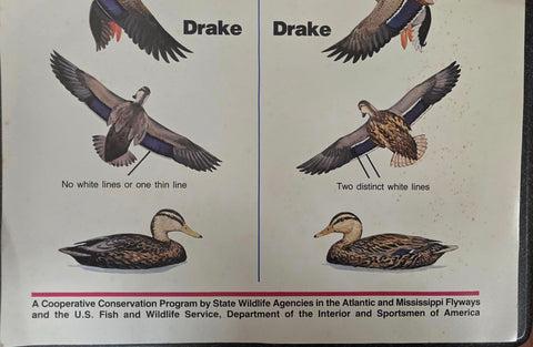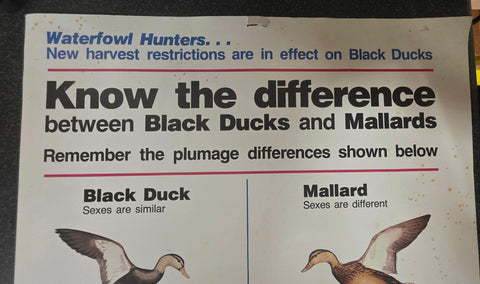 vintage waterfowl hunting poster created by a cooperative conservation program to help hunters distinguish between black ducks and mallards.