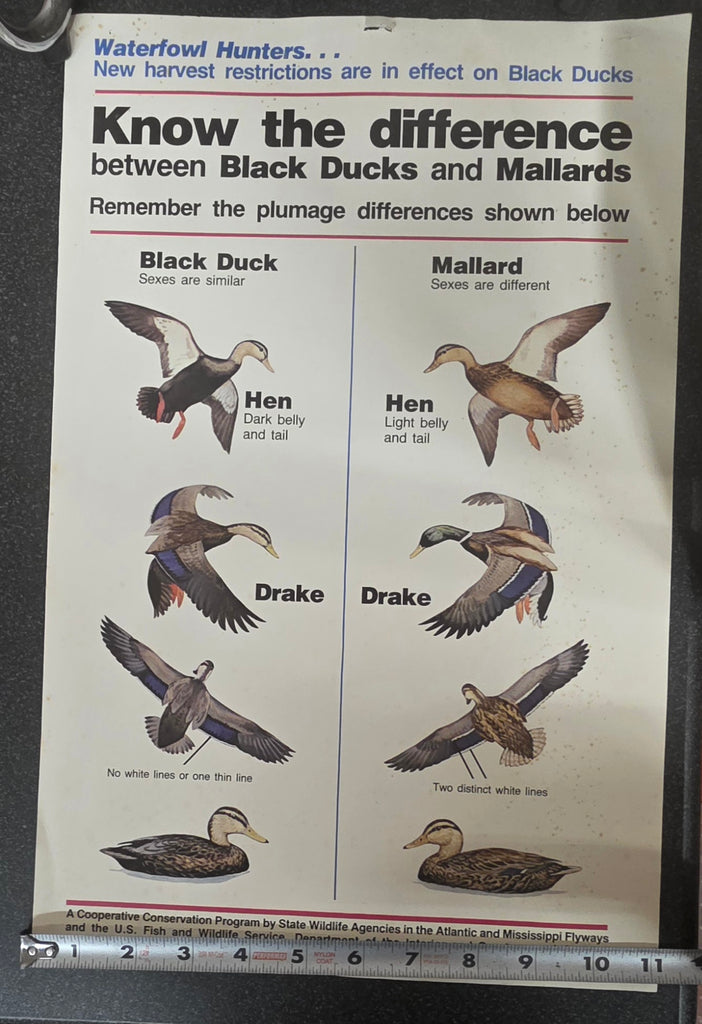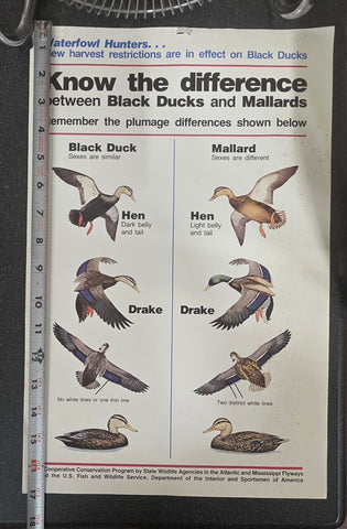 VTG U.S. Fish and Wildlife Sportsmen Waterfowl Hunters Black Duck Mallard Poster