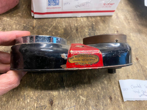 Vtg Waltham Waturbury Speedometer Clock Dash Assy Cleveland Motorcycle Gauge 20's ??? Not sure what these go to, marked Cleveland on the back?? Pretty heavy set of guages, Lens is cracked as pictured. Guess Waltham made speedos for autos..... if you know or have an idea let us know...... came with a bunch of old American & British bike parts....